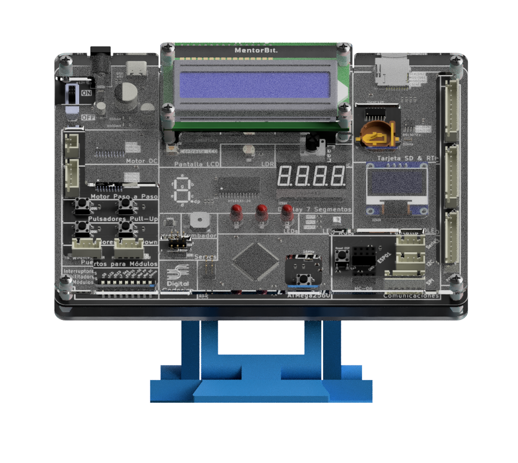 Descripción: MentorBit es una placa que basa su funcionamiento en el microcontrolador ATMEGA2560. Destaca por incorporar una amplia variedad de sensores y actuadores, permitiendo así una gran diversidad de aplicaciones. Además, cuenta con múltiples conectores de entrada y salida, lo que le otorga una notable versatilidad y capacidad de adaptación a diferentes proyectos y necesidades. Gracias a estas características, MentorBit se convierte en una herramienta ideal tanto para principiantes como para expertos en electrónica y programación, facilitando el desarrollo de proyectos innovadores y complejos.